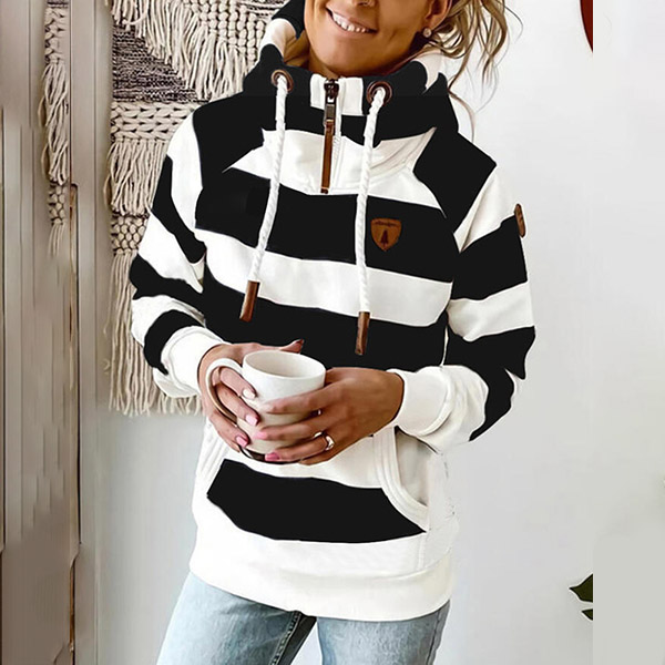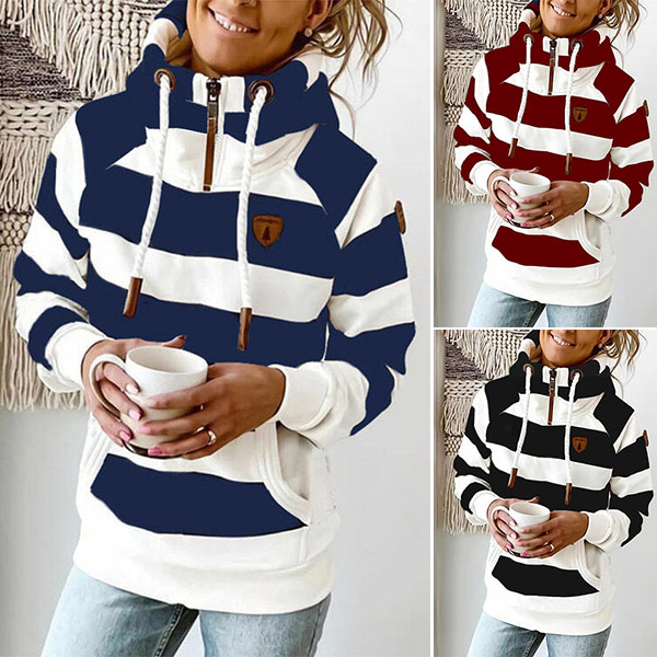As for a casual,relaxed yet stylish autumn look,the sweatshirt will first come into your mind. The stripe element design makes this piece look so stylish and popular. Crafted from soft and breathable fabric,with long sleeve and hooded silhouette,this cozy yet stylish sweatshirt would be your wise investment.