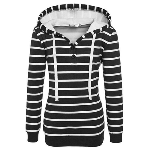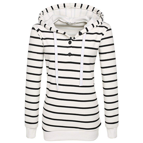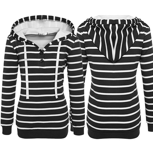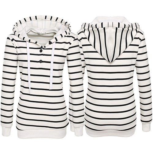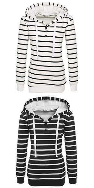 hooded, long sleeve and striped design, this piece is so casual and classic. Its front buttons design