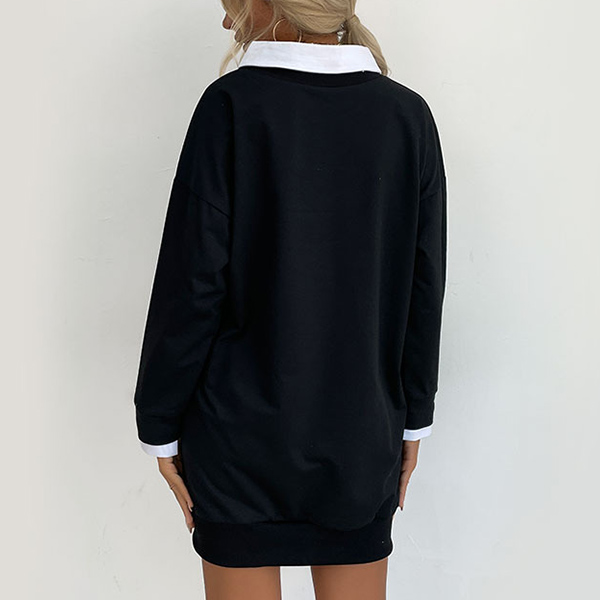 Casual Style Long Sleeve Letters Printed Mock Two-piece Sweatshirt Dress