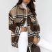 Wanna a casual and relaxed style shirt? Then look no further than this piece. The plaid element design makes it look stylish and popular. Finished with long sleeve,POLO collar and a loose silhouette,this piece also can be as the cardigan in these autumn days. So why not take interest in this wonderful piece?