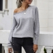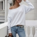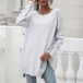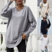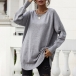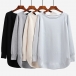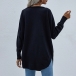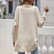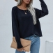 Casual Style Long Sleeve Round Neck Arc Hem Solid Color Loose Knit Top