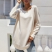As for a casual,laid-back yet stylish autumn look,this long sleeve knit top can be your perfect addition. Crafted in a solid color,with long sleeve,round neck,arc hem and a loose silhouette,this knit top can can keep warm and comfy. Matching with your tight pants would be a good idea.