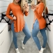 Casual Style Long Sleeve Round Neck Button Slit Hem Solid Color T-shirt