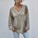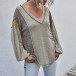 Casual Style Long Sleeve Round Neck Contrast Color Loose T-shirt