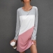 For your night walking or casual weekend time,this relaxed t-shirt dress would be your wise choice. Contrast color style,crafted from soft and breathable fabric,with long sleeve and round neck design,this t-shirt can promise you an utmost comfort. Enrich your casual wardrobe ensemble with this little piece.