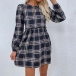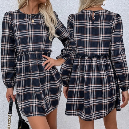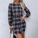 Casual Style Long Sleeve Round Neck High Waist Plaid Dress