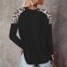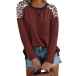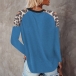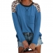 Casual Style Long Sleeve Round Neck Leopard Spliced Loose T-shirt