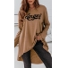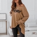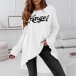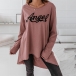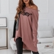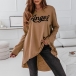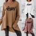 Casual Style Long Sleeve Round Neck Letters Printed High-low Hem Loose T-shirt
