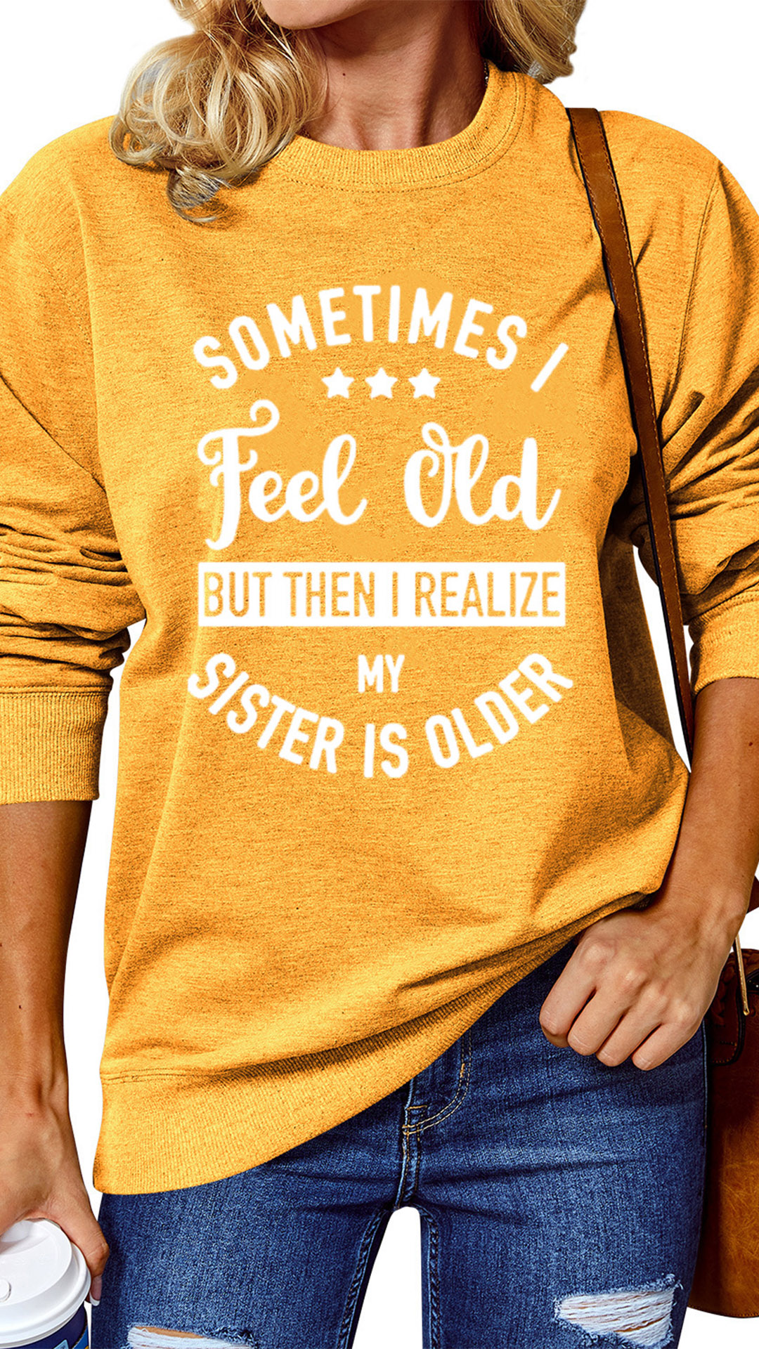 Casual Style Long Sleeve Round Neck Letters Printed Loose Sweatshirt