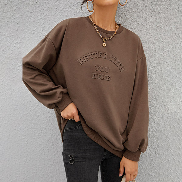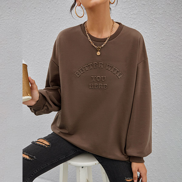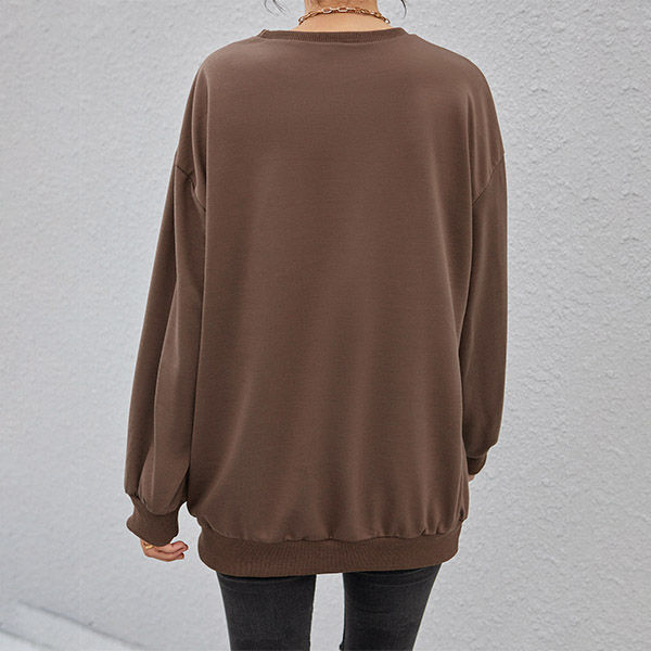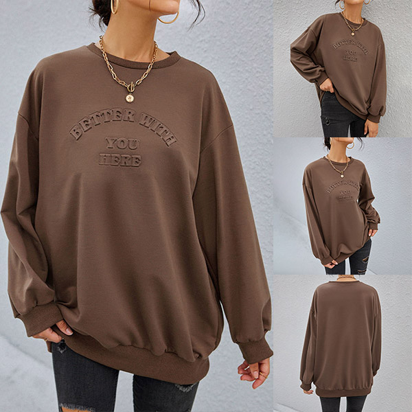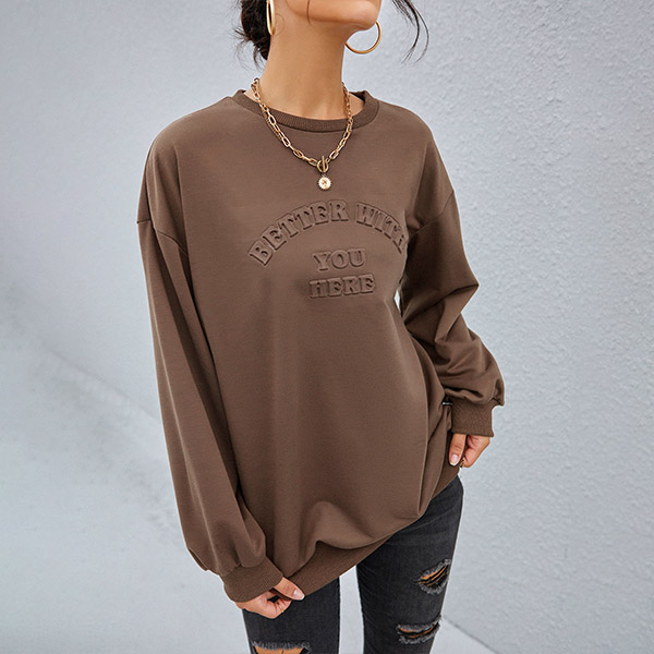 Casual Style Long Sleeve Round Neck Letters Printed Loose Sweatshirt