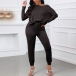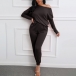 Casual Style Long Sleeve Round Neck Loose T-shirt + Pants Two-piece Set