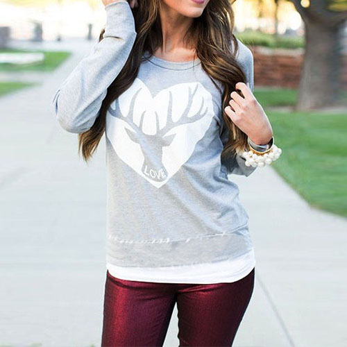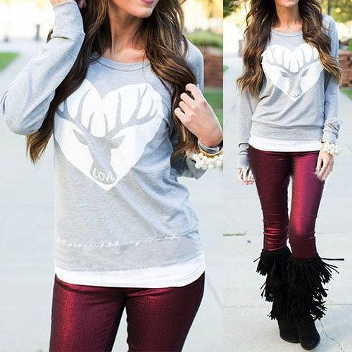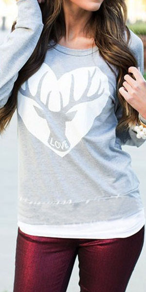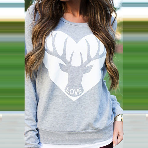 This sweatshirt features heart and elk printed pattern,sweet and chic. Crafted from soft and
