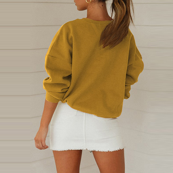 If you like casual style,then you can have a try this sweatshirt. Boasting a solid color,finished with long sleeve,round neck and a loose silhouette,this piece not only can give you a comfortable day,but also can offer you different matching styles.