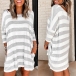 For your night walking or weekend strolling,this simple,relaxed yet stylish dress can be your wise choice. The stripe element design makes it look stylish and popular. Crafted from soft and breathable fabric,with long sleeve,round neck and a loose silhouette,this piece can promise you a comfortable day.