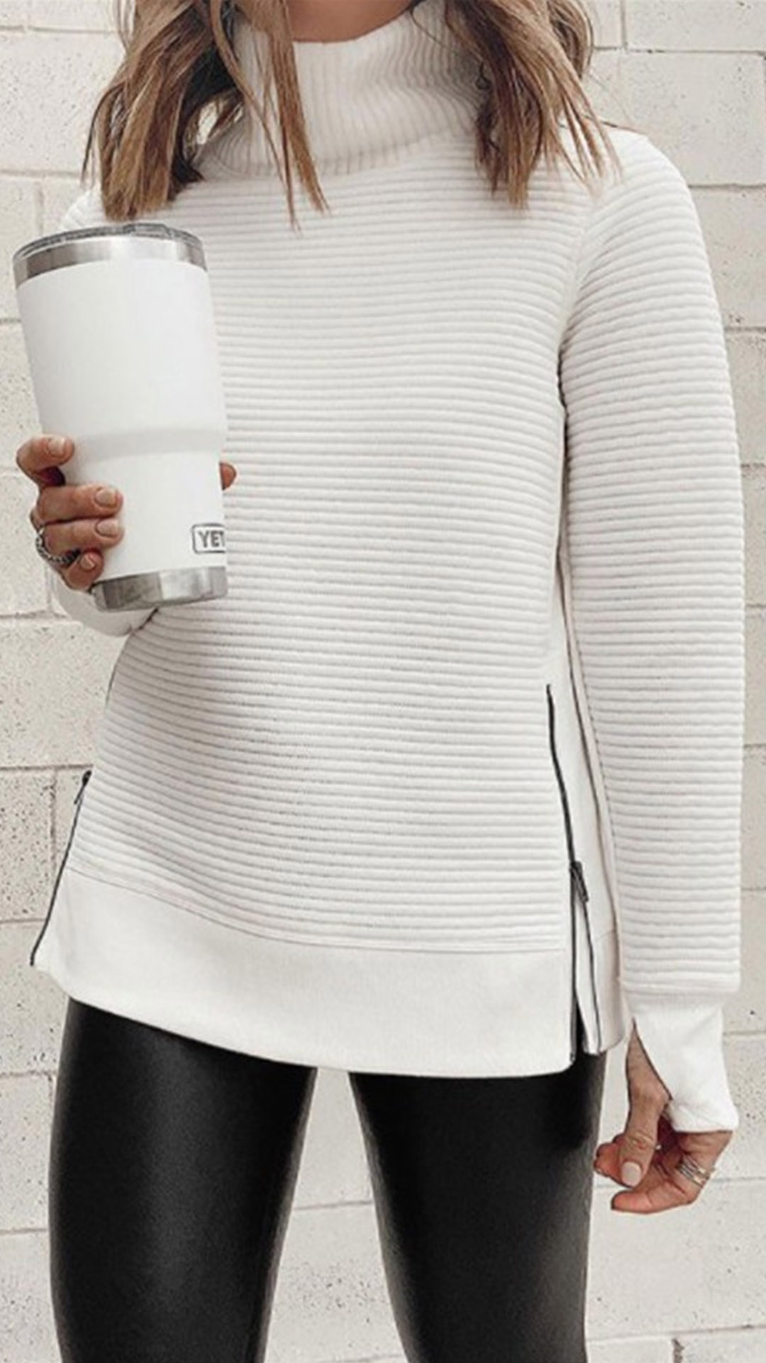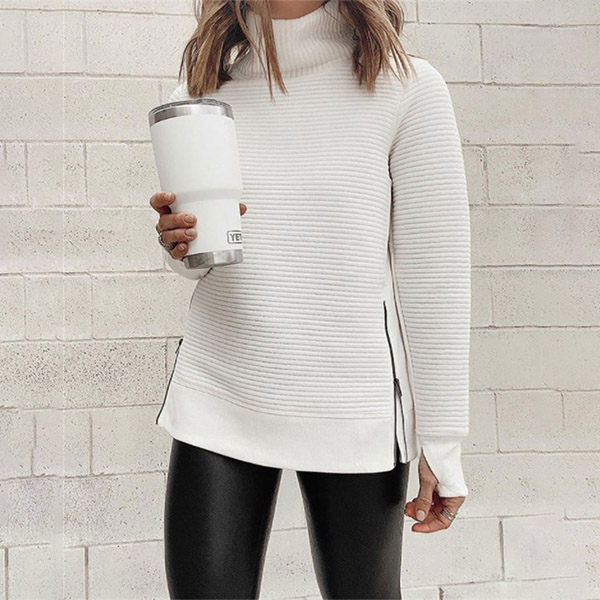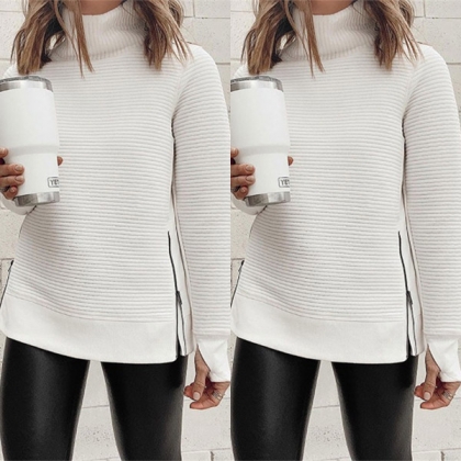 Compared with your other classic sweatshirts,this piece can bring you more style. Crafted in a solid color,the unique high collar and side-zipper design enrich the design style,while its soft and breathable fabric can give you a warm and comfortable day. Like this piece? Then invite it to your wardrobe! It is perfect ft for your autumn days.