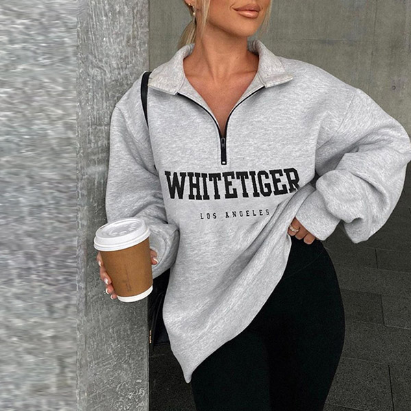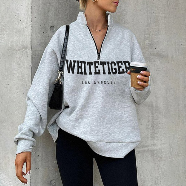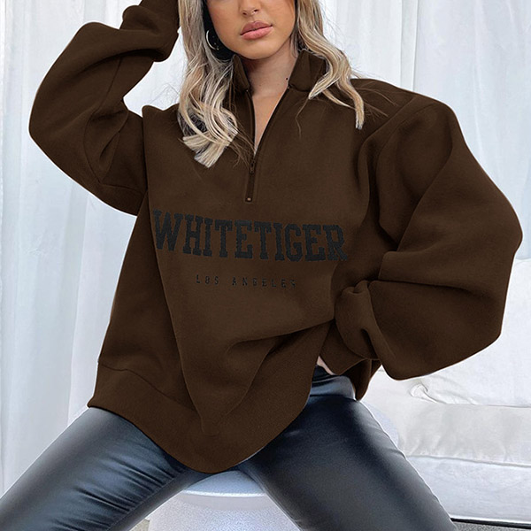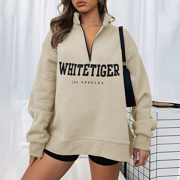 Casual Style Long Sleeve Stand Collar Letters Printed Sweatshirt