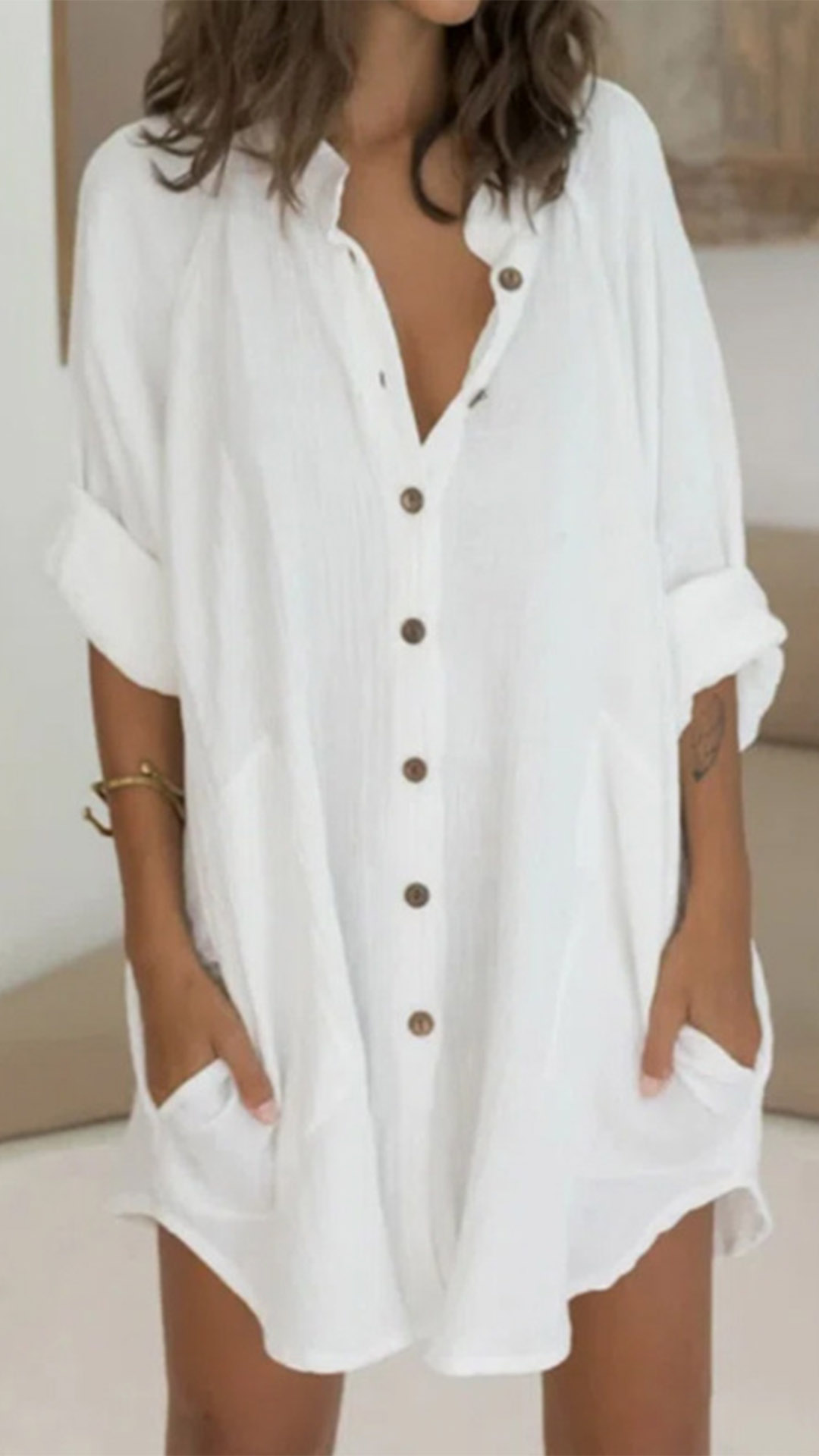 Casual Style Long Sleeve Stand Collar Single-breasted Loose Shirt Dress