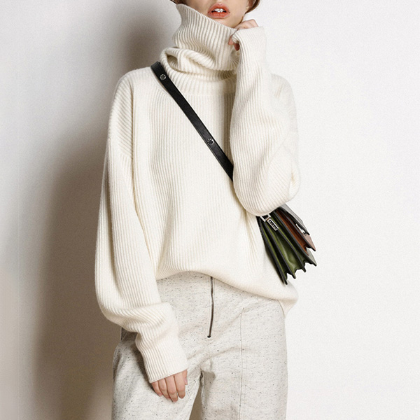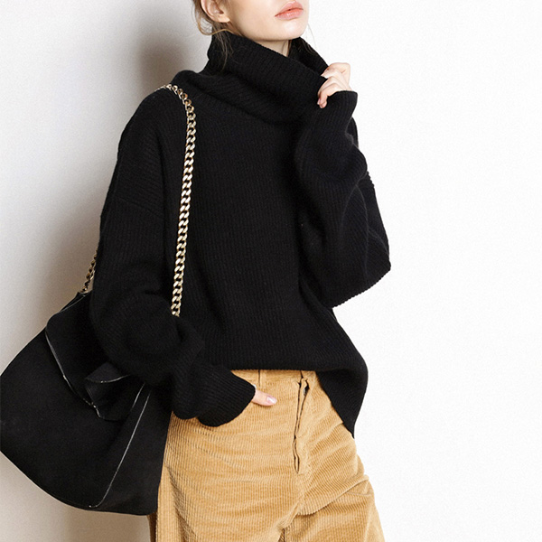 As one of the winter essentials classics,the sweater would easily strike your mind. Features a solid color,the loose silhouette design will lend you some lazy and casual sense,while the turtleneck and cozy knitted fabric can give you a warm day. It is worth to be your wardrobe staple when the days get cold.