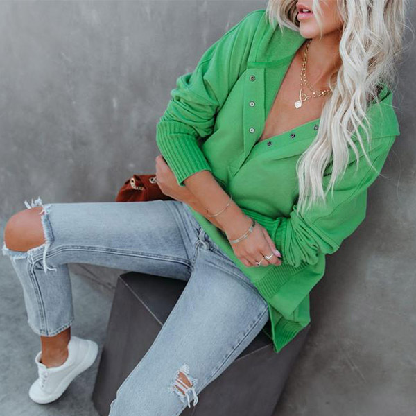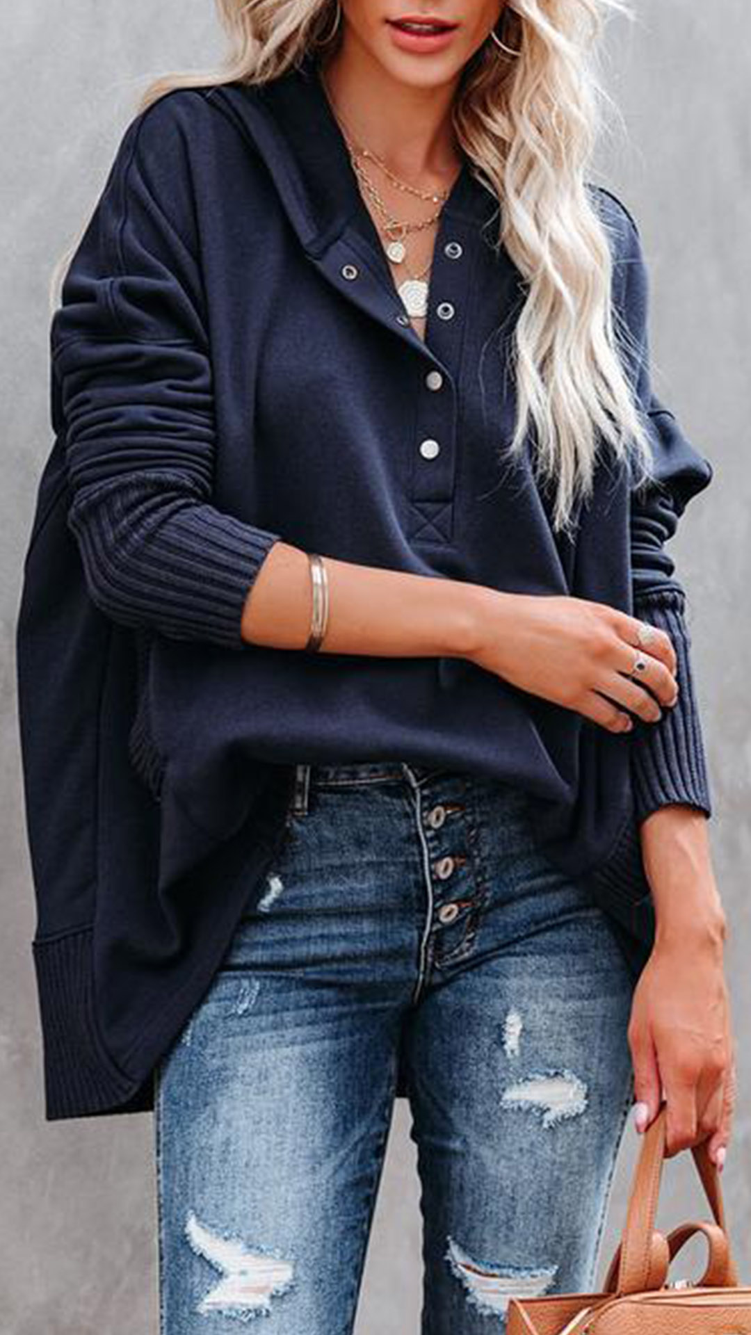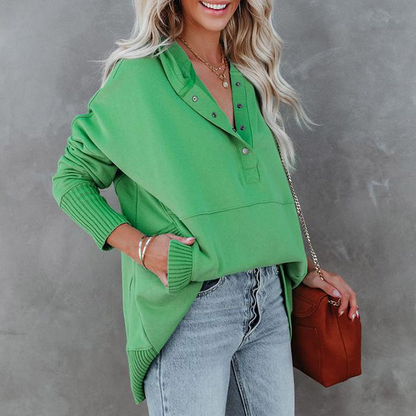 For a casual,relaxed autumn look,you can just have a try this sweatshirt. The dolman sleeve design makes it look not so simple and classic. Crafted from soft and breathable fabric,with long sleeve,v-neck and a loose silhouette,this sweatshirt can give you a comfortable day. Perfect fit for matching with your jeans and casual pants.