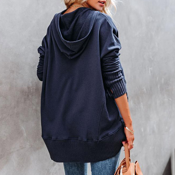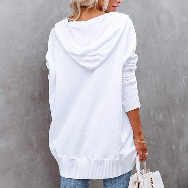 Casual Style Long Sleeve V-neck Hooded Loose Sweatshirt
