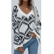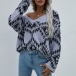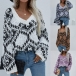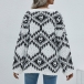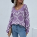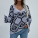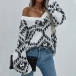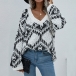Casual Style Long Sleeve V-neck Loose Contrast Color Printed Loose Sweater