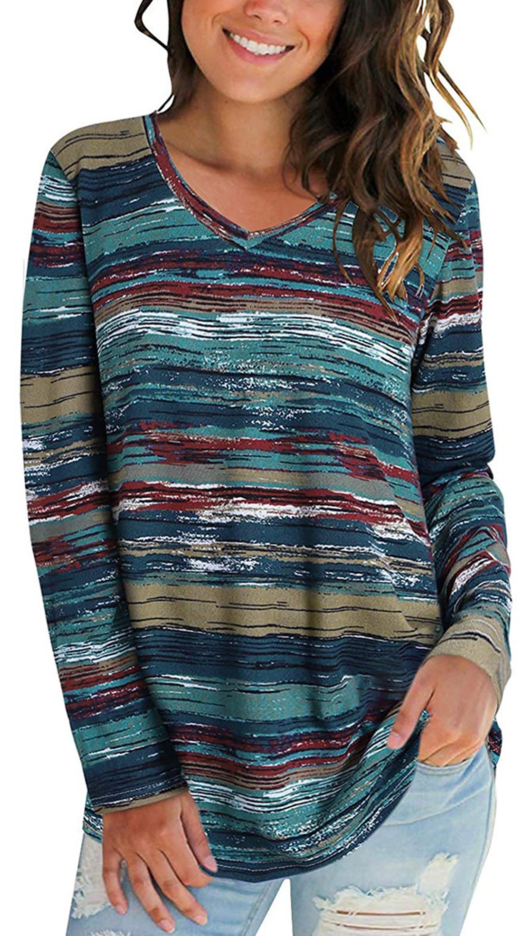 Casual Style Long Sleeve V-neck Loose Printed T-shirt