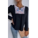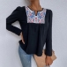 Casual Style Long Sleeve V-neck Printed Spliced Loose T-shirt