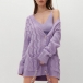 Casual Style Long Sleeve V-neck Singl-breasted Solid Color Loose Knit Cardigan
