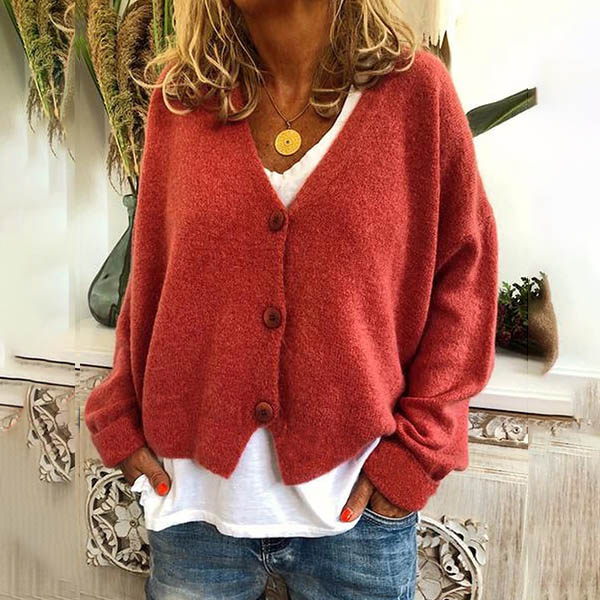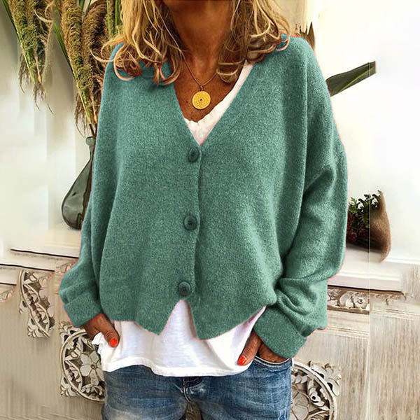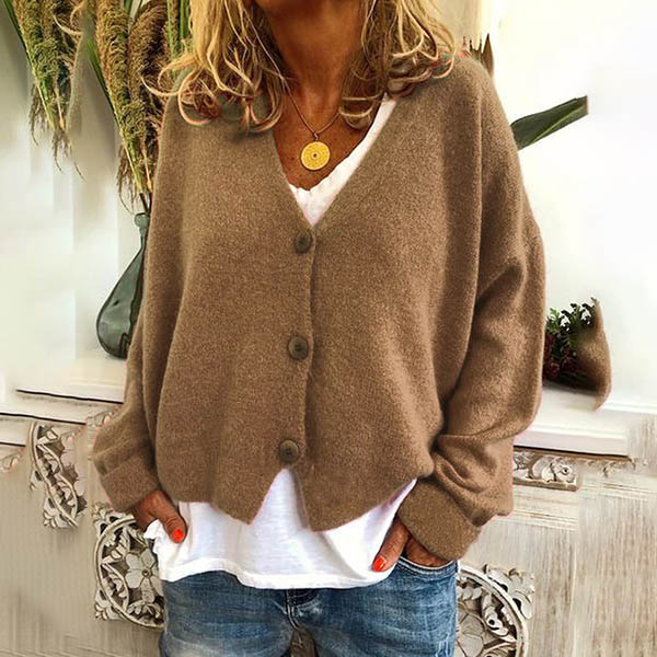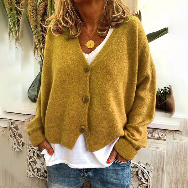 Casual Style Long Sleeve V-neck Solid Color Knit Cardigan