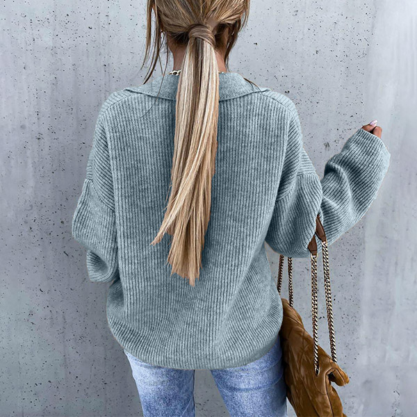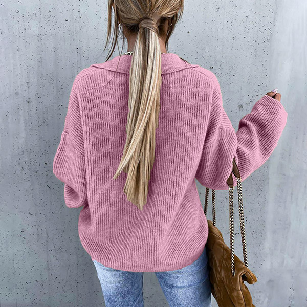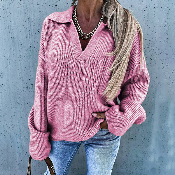 Casual Style Long Sleeve V-neck Solid Color Loose Knit Sweater Top
