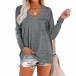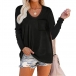 Casual Style Long Sleeve V-neck Solid Color Loose T-shirt