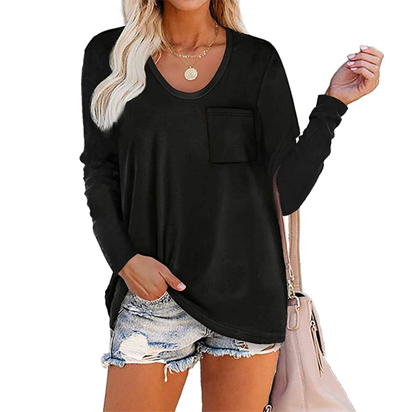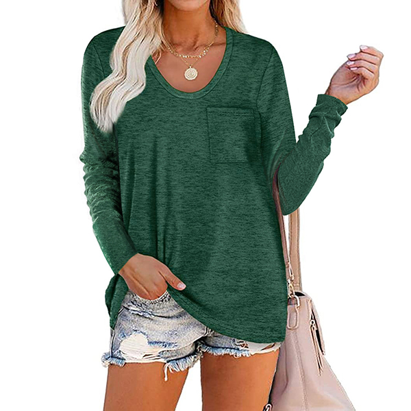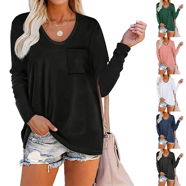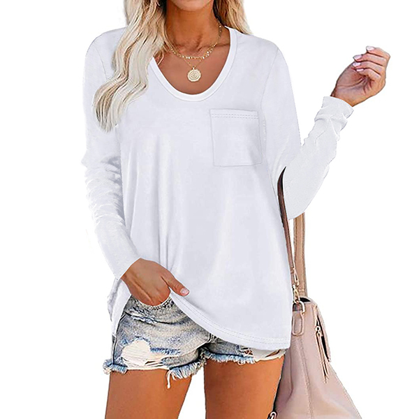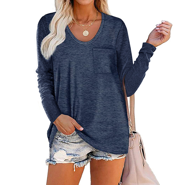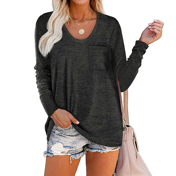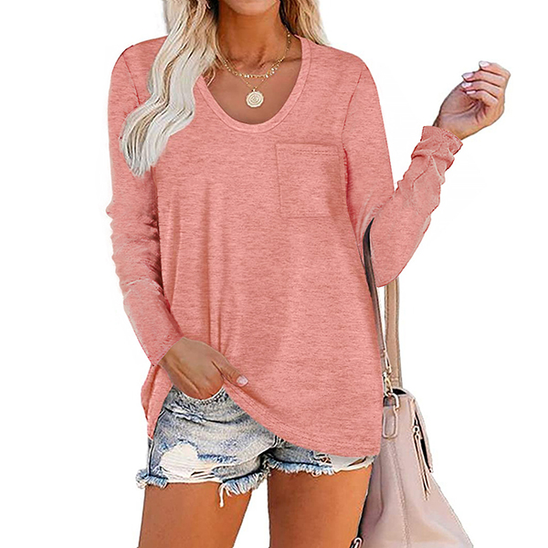 Crafted in a solid color,with long sleeve,v-neck and a loose silhouette,this t-shirt not only can give you an utmost comfort ,but also can maintain a laid-back,casual and relaxed daily style. On your lazy days when you don't wanna take too much time to do your matching,then this all-match t-shirt would be your perfect solution.