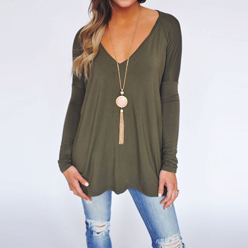 Crafted from soft and breathable fabric,with a relaxed-fit silhouette,long sleeve and v-neckline,