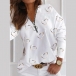 Casual Style Long Sleeve Zipper V-neck Heart Printed Loose T-shirt