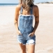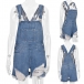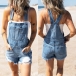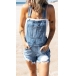 Casual Style Middle Waist Ripped Denim Overalls Shorts