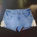 Casual Style Middle Waist Side Lace-trim Spliced Denim Shorts