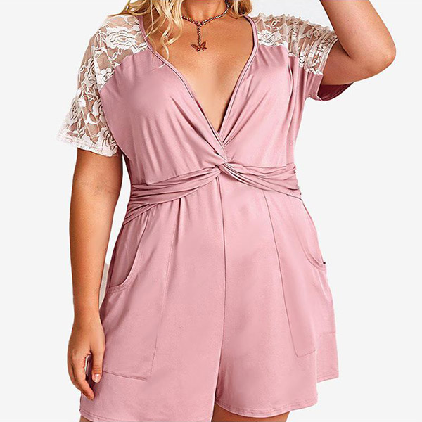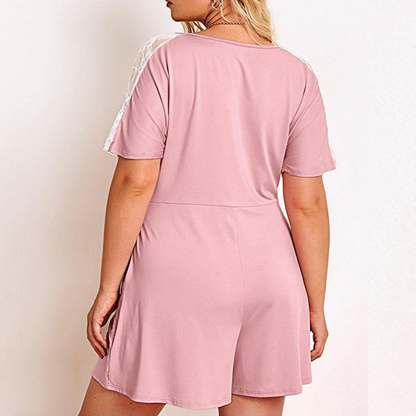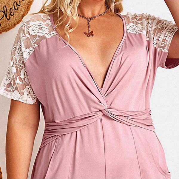 Casual Style Oversized Knit Jumpsuit with Lace Panel Details