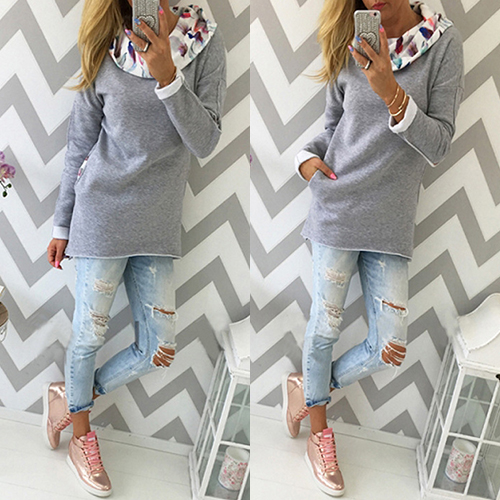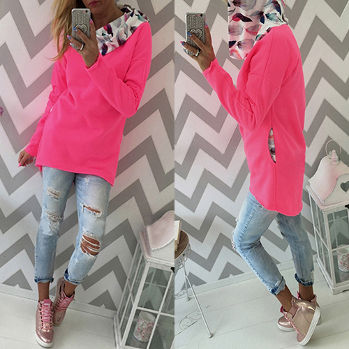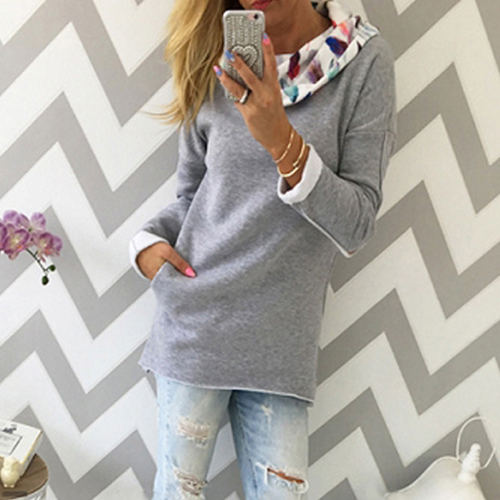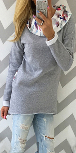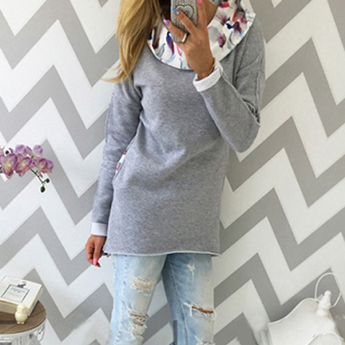 Adopt printed spliced technology, this sweatshirt is designed with long sleeve, 2 side pockets and hooded,