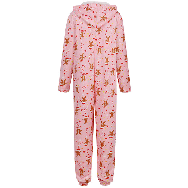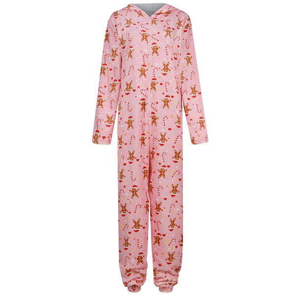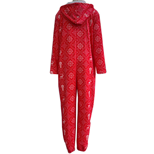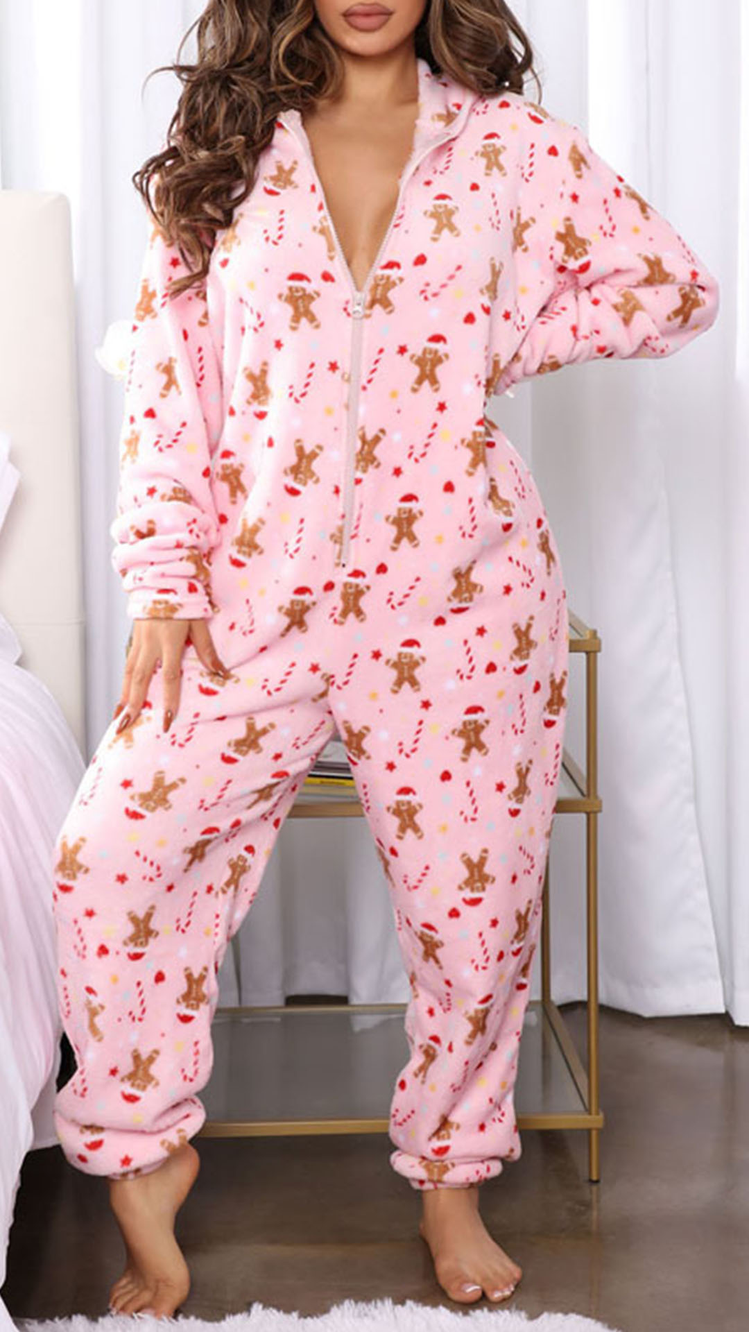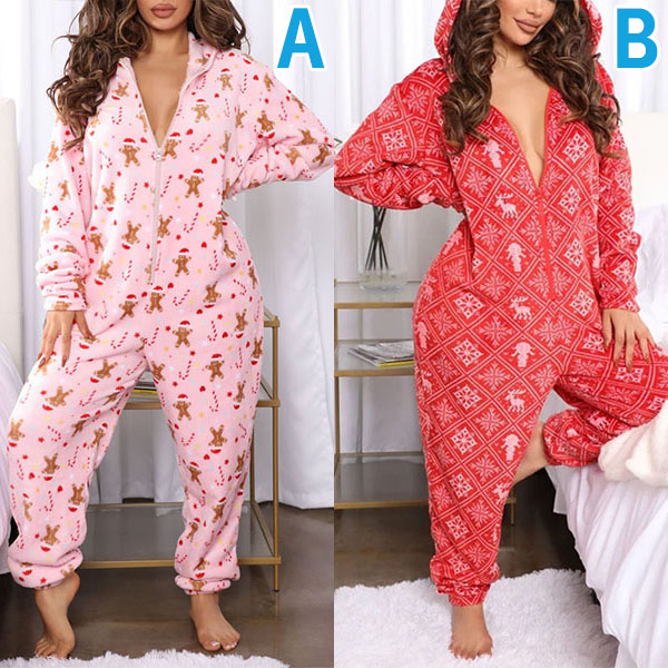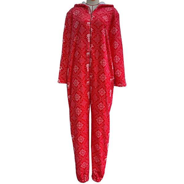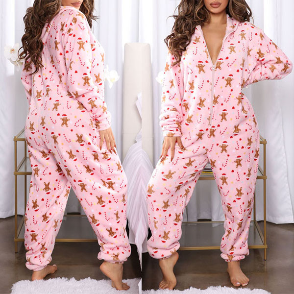Casual Style Printed Long Sleeve Hooded Loose Flannel Jumpsuit One-piece Pajama