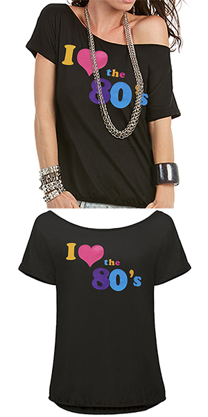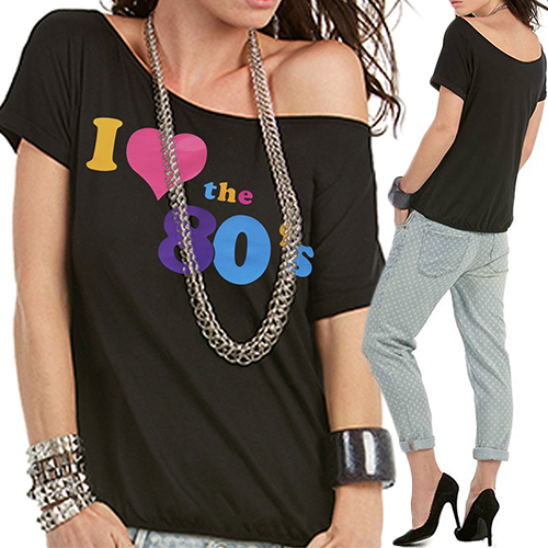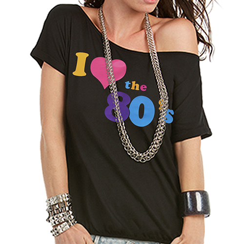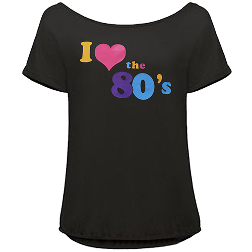 A round neck short sleeve T-shirt with printed design, fashion and eye-catching. "I love the 80's",