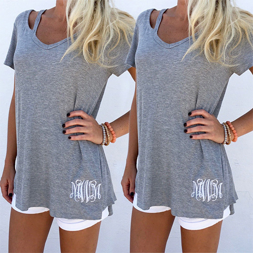 casual shorts or pants, it is an ideal collocation for your trip. V-neck, short sleeve and cold shoulder