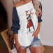 Casual Style Raglan Sleeve Contrast Color Printed Loose T-shirt