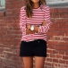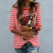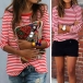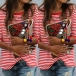The perfect details on the red-white striped spliced make this T-shirt look so eye-catching and vogue.