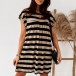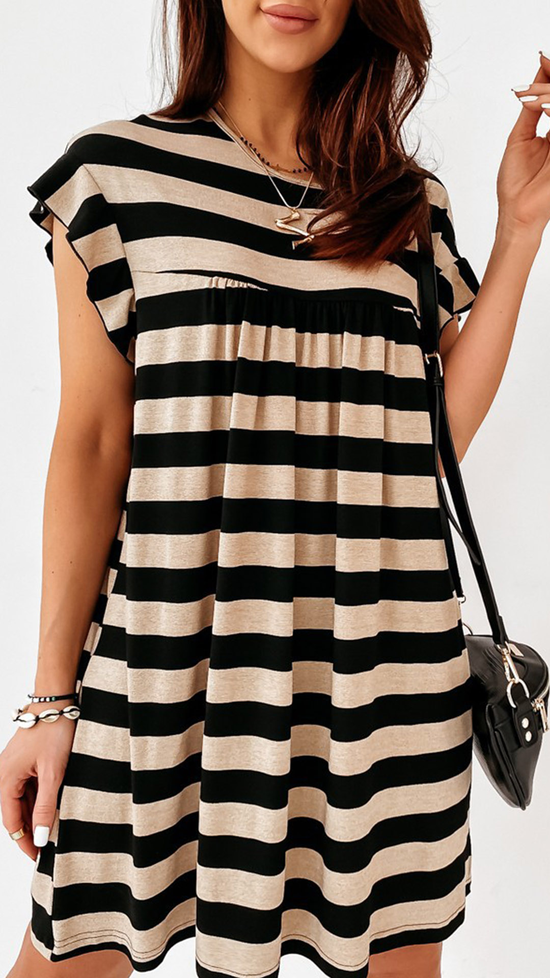 Casual Style Ruffle Cuff Round Neck Loose Striped Dress