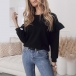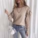 Casual Style Ruffle Long Sleeve Round Neck Solid Color Loose Sweatshirt