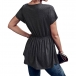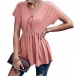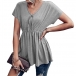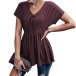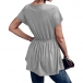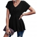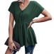 Casual Style Short Sleeve Drawstring V-neck Elastic Waist Solid Color T-shirt