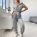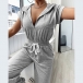 Casual Style Short Sleeve Elastic High Waist Hooded Solid Color Jumpsuit