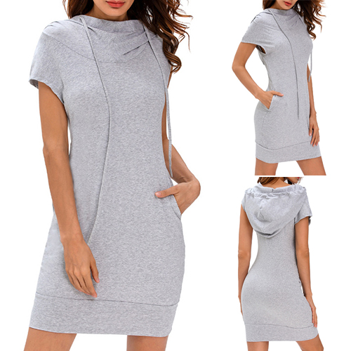 Slip into this sweatshirt dress for a relaxed style on your casual days. Solid color style,with short sleeve,
