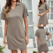Casual Style Short Sleeve POLO Collar Slit Hem Solid Color Dress