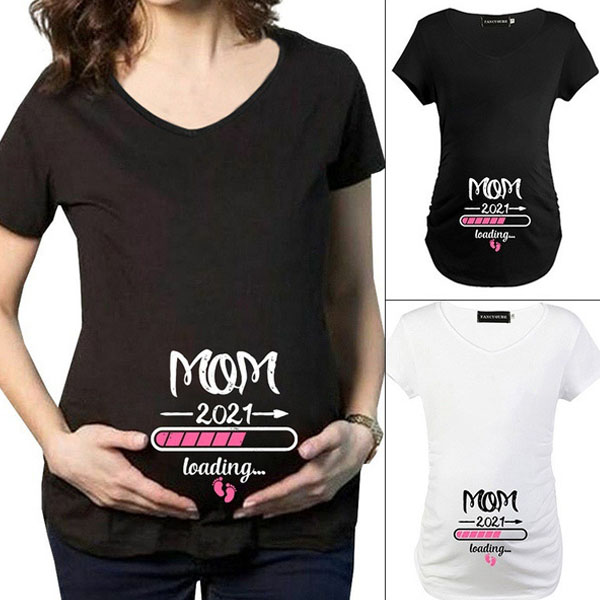 This t-shirt is crafted from soft,breathable fabric,with short sleeve and round neck design,simple,cozy yet stylish. The letters printed details like "baby loading" stands for your expect for your baby. It is a good choice fro these pregnant woman in their pregnant time.